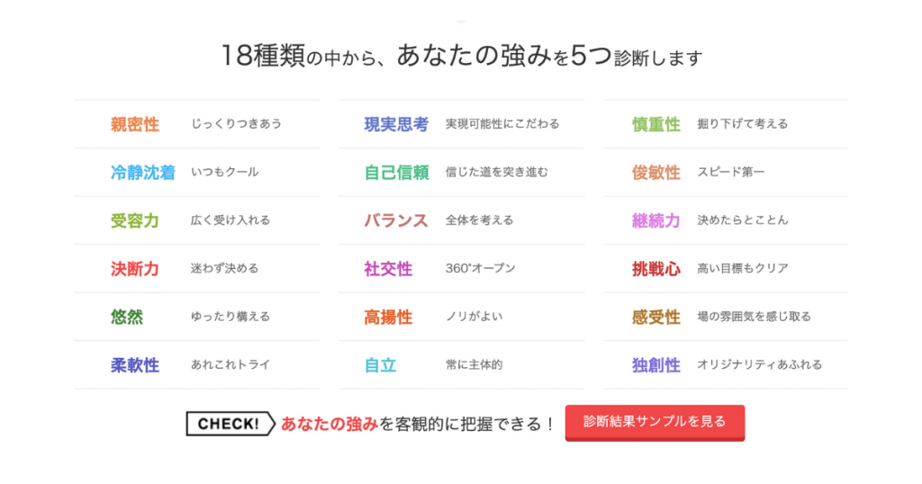 - 無料で『ストレングスファインダー(有料)』と同程度の分析をしてくる